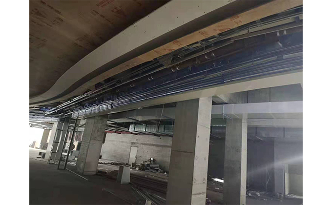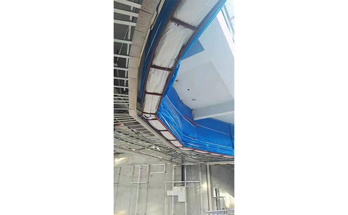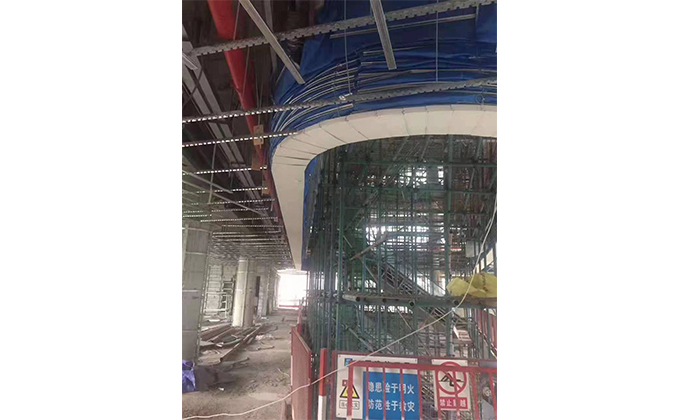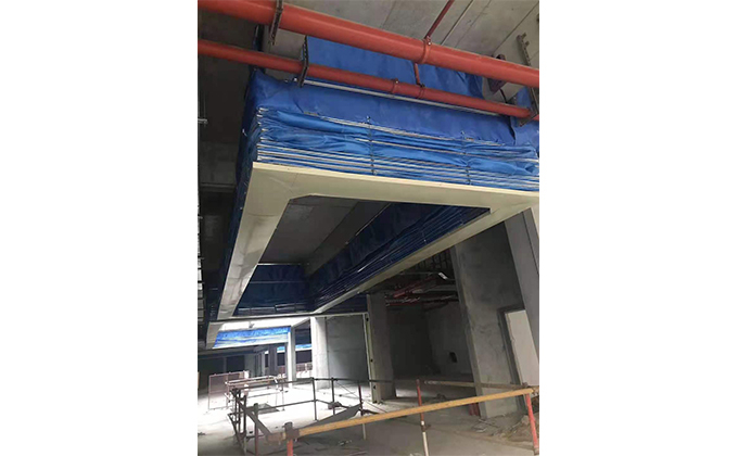 擋煙垂簾垂壁根據(jù)設計要求和現(xiàn)場實際情況采取如下施工順序:首先,搭設腳手架一放線一打眼--上脹栓一焊骨架。第二,吊件一安裝骨架…